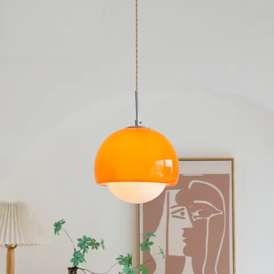 Bring a touch of vintage charm to your space with the Vibrant Retro Pendant Light. Inspired by Bauhaus and Scandinavian aesthetics, its bold orange and beige tones create a sophisticated yet playful ambiance. Perfect for bedrooms, restaurants, or living spaces, this pendant light blends timeless design with modern functionality.